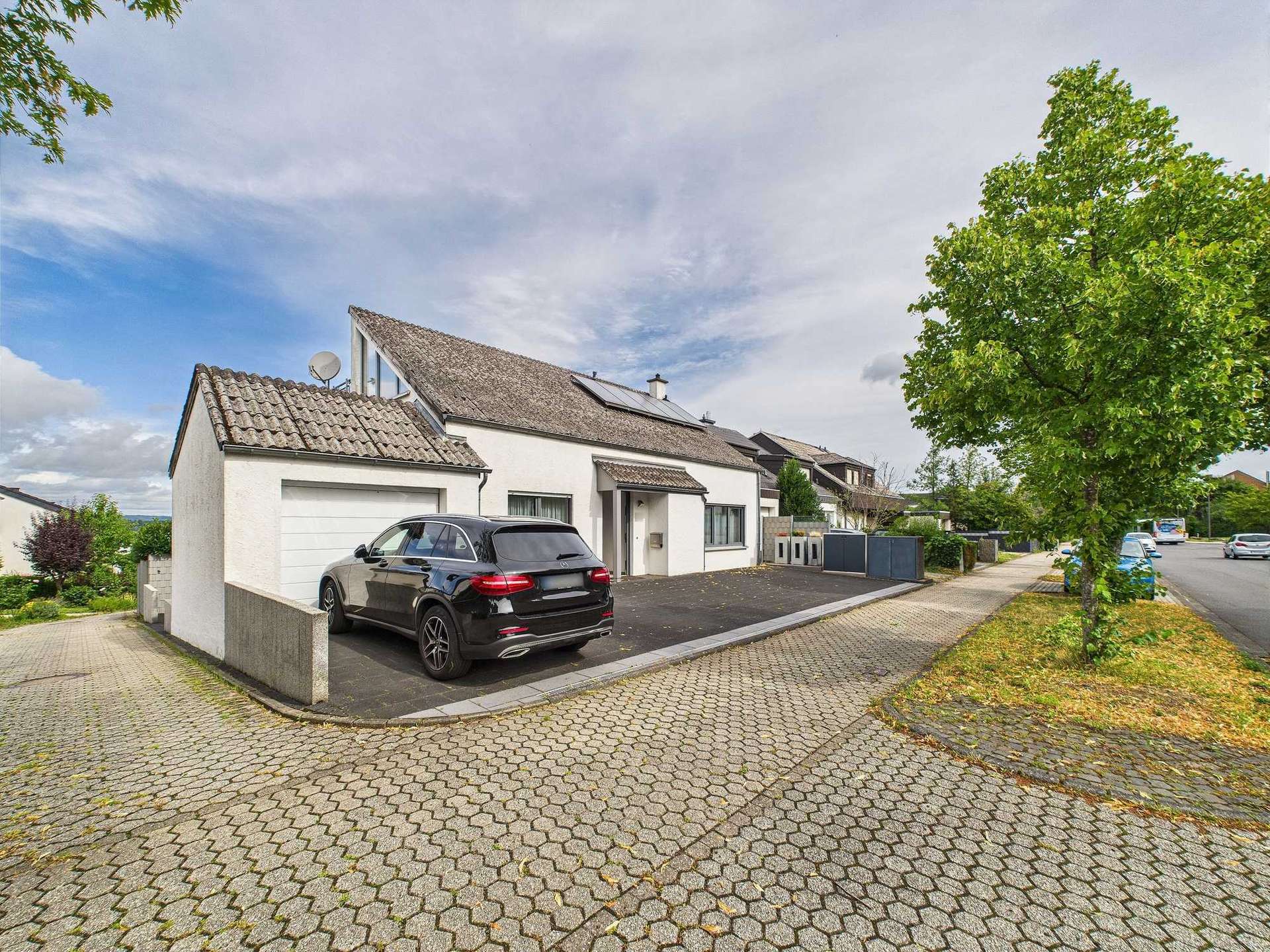 Praktisch und großzügig präsentiert sich auch der Außenbereich: Eine Garage sowie bis zu vier Außenstellplätze bieten viel Platz für Fahrzeuge. Der vordere Teil des Hauses und die Garage sind unterkellert. Hier befinden sich mehrere Lager- und Abstellräume, die Waschküche sowie die moderne Gaszentralheizung aus dem Jahr 2022.