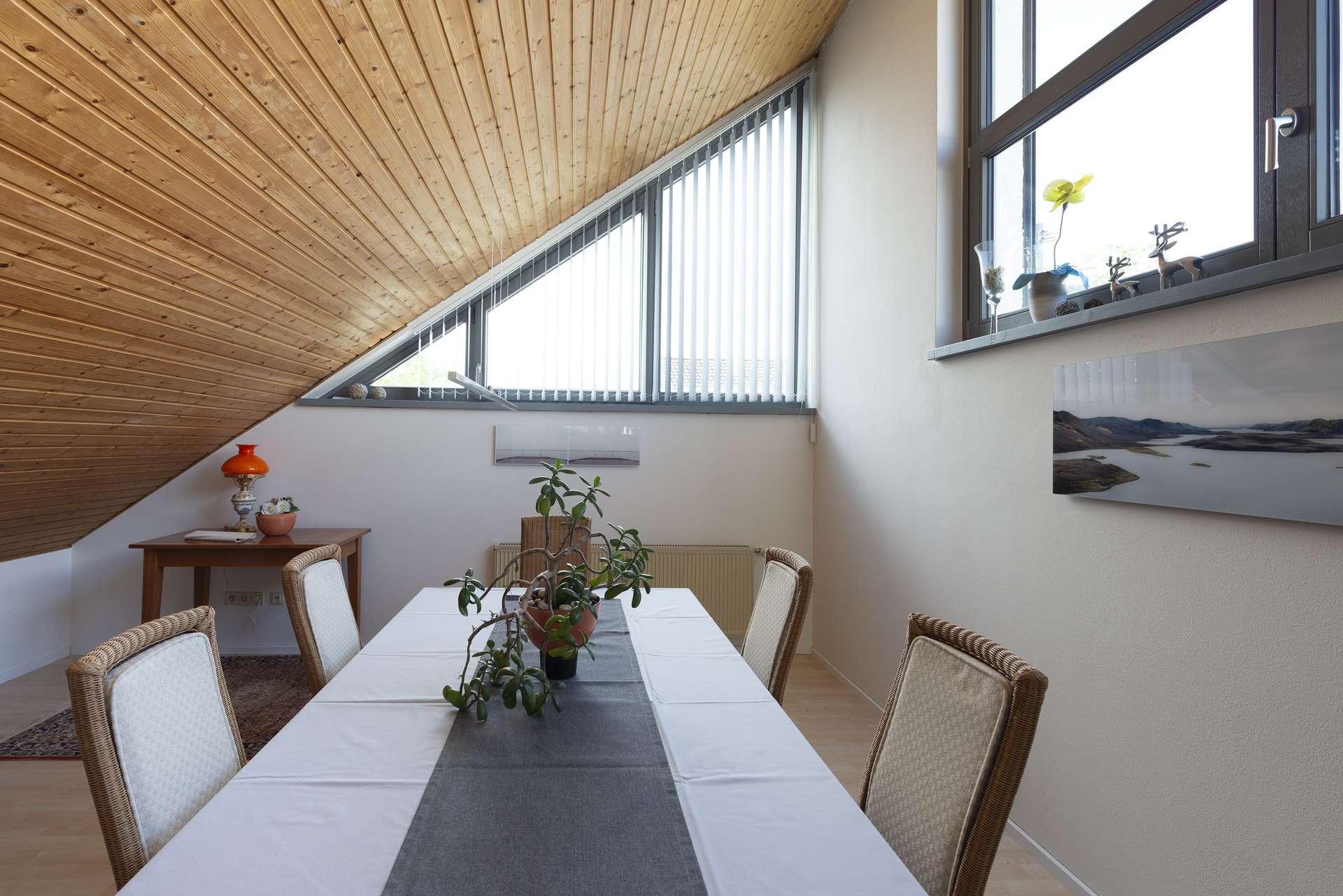 Die separat zugängliche, aber auch intern erreichbare mögliche Einliegerwohnung bietet rund 88 m² Wohnfläche auf zwei Etagen und überzeugt mit flexiblen Nutzungsmöglichkeiten: Ob als Büro, für erwachsene Kinder, zur Vermietung oder für die Großeltern – hier sind Ihnen keine Grenzen gesetzt. Im Erdgeschoss befinden sich ein Wohnzimmer, ein Raum der ideal als Küche genutzt werden kann sowie ein Duschbad. Im Obergeschoss ergänzt eine kleine Singleküche mit offenem Essbereich sowie zwei weitere Zimmer das Raumangebot. Die eigene Dachterrasse der Einliegerwohnung bietet zusätzliches Wohlfühlpotenzial.