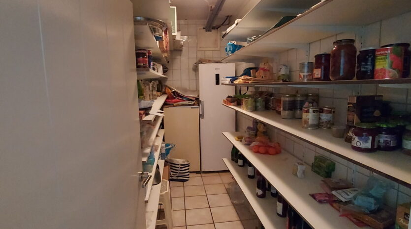 Woongedeelte op de begane grond met woonkamer, keuken, voorraadruimte, toilet, wasruimte en bureau.