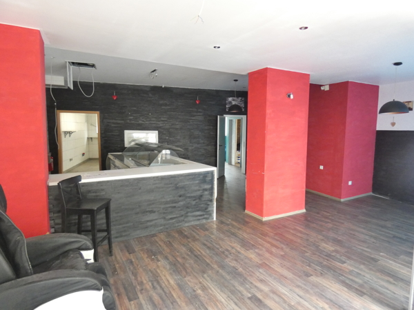 Op de begane grond is de commerciële unit te vinden. Deze beschikt over een verkoopruimte met balie en eventueel zitgelegenheid, een grote keuken, dames- en herentoiletten, een klein magazijn als doorgang naar de kleine garage. Via de garage is de kelder bereikbaar.
