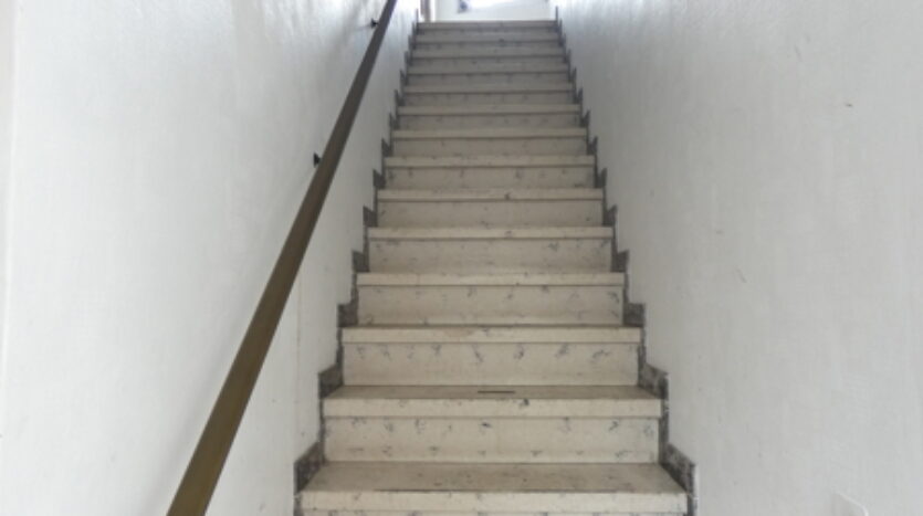 Das Obergeschoss, und demnach die Wohneinheit, ist über einen separaten Zugang erreichbar. Die Wohnung verfügt über zwei Schlafzimmer, eine Küche, ein mögliches Esszimmer, ein Wohnzimmer sowie ein innenliegendes Badezimmer mit Waschbecken, Dusche und WC.