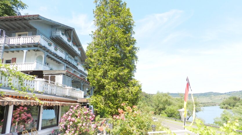 Traben-Tarbach: Hotel/restaurant met 180 graden uitzicht op de Moezel, geweldige terrassen, balkons, zwembad en aanlegsteiger te koop op een toplocatie.