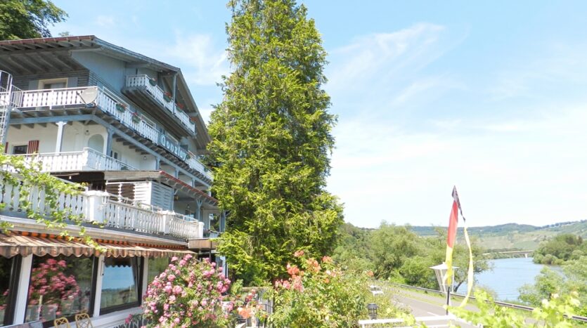 Traben-Tarbach: Hotel/restaurant met 180 graden uitzicht op de Moezel, geweldige terrassen, balkons, zwembad en aanlegsteiger te koop op een toplocatie.