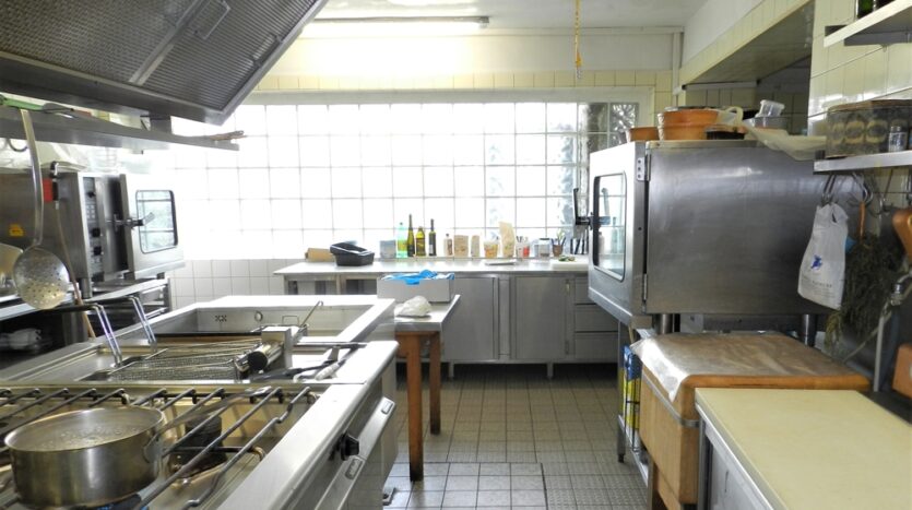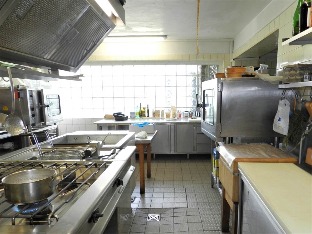 * Küche: ca. 62 m² zzgl. Kühlhaus, Kaltgetränke-Theke, Abstellraum und Vorratsräume zusammen ca. 30 m² (Kochen auf Gas)