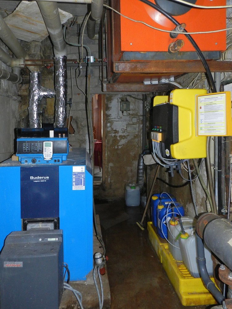 - Heizungsanlage: Buderus Logano GE 315 aus 2015 und Kunststofftanks (5000 Liter)