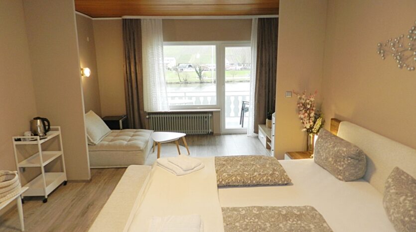 Aktuell werden 23 Doppelzimmer in verschiedenen Größen und Ausstattungsklassen sowie 4 Einzelzimmer mit Balkon und Moselblick vermietet.