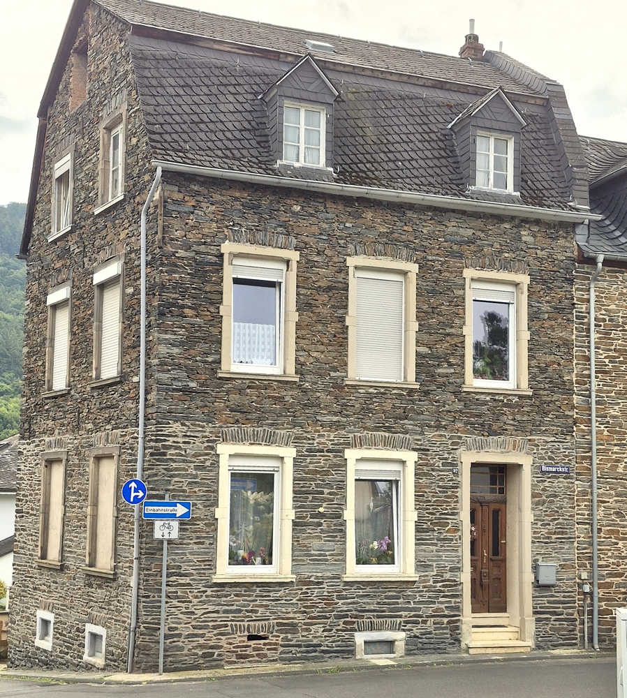 Die antike Holztreppe, einzelne Holzböden und antike Türen incl. der Haustür sind noch vorhanden. Weiterhin gibt eine moseltypische Bruchsteinfassade dem Objekt seinen regional üblichen Charme.