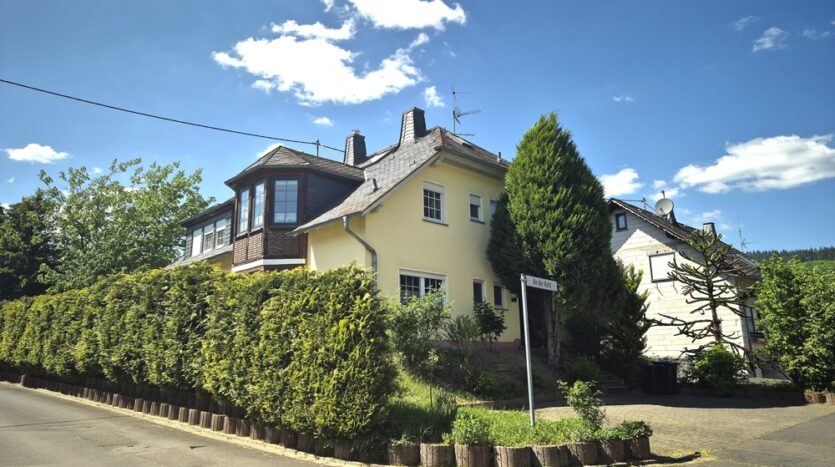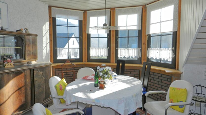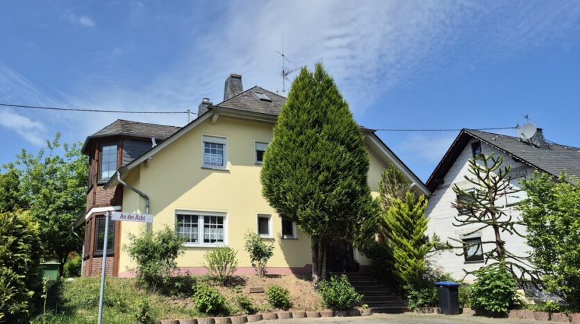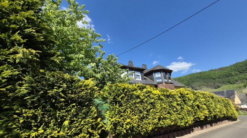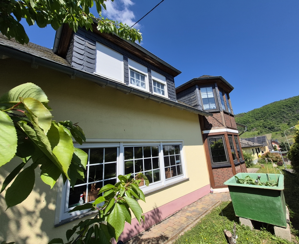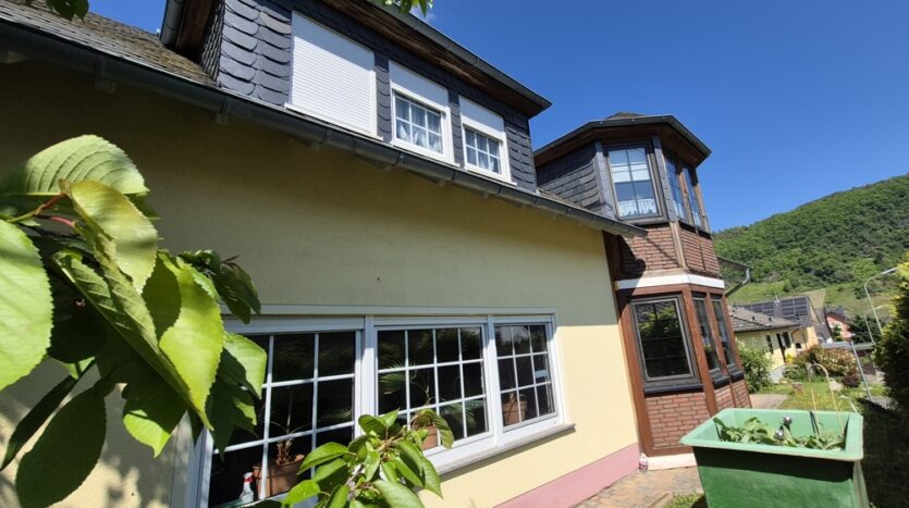 Traben-Trarbach/Wolf: Solide tweegezinswoning met garage/wijnkelder te koop op een rustige locatie aan de rand van het dorp Wolf.