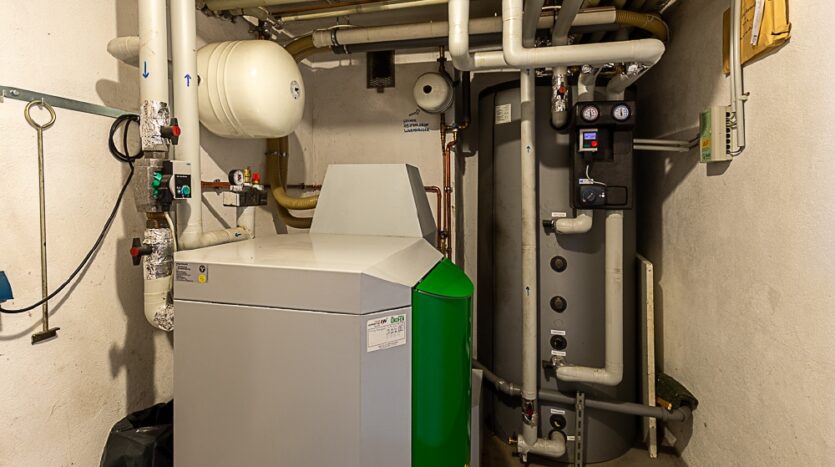 zwei Räume (mit Heizkörpern und Fenstern), großer Hobbyraum mit Ausgang, Flur, Sauna mit Dusche/WC, Waschküche, Vorratsraum, Werkraum, Heizungsraum und Pelletlager