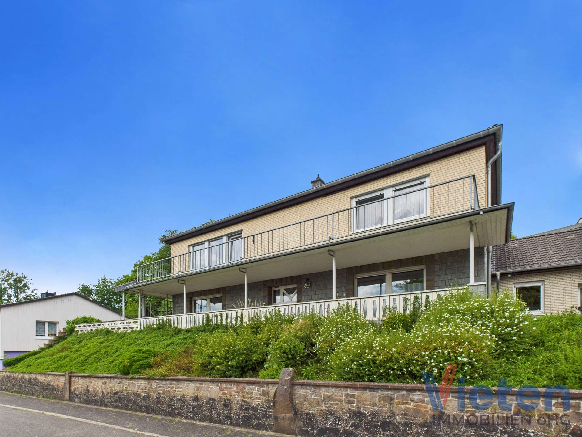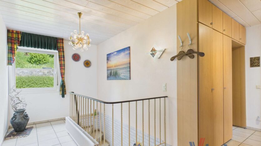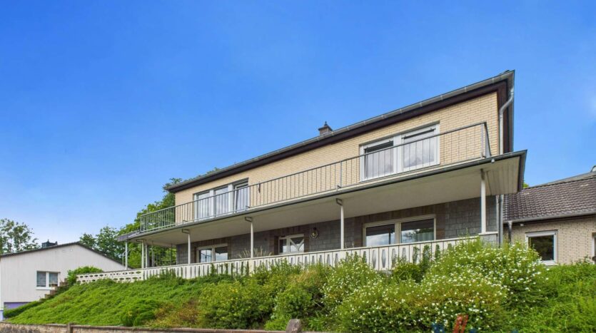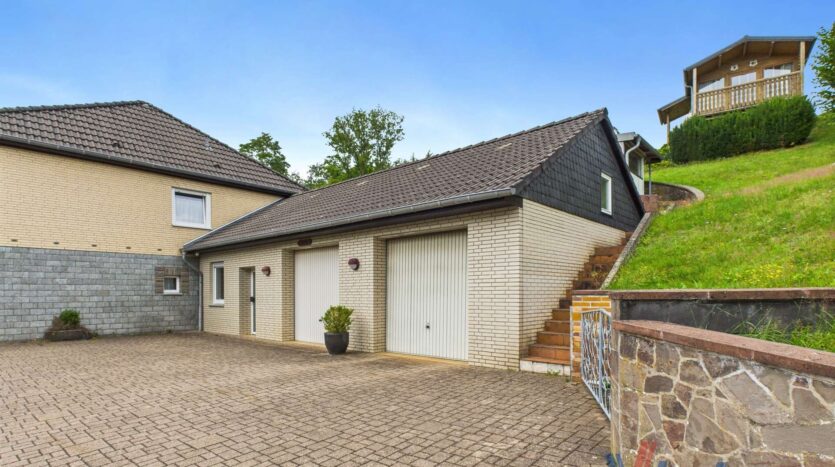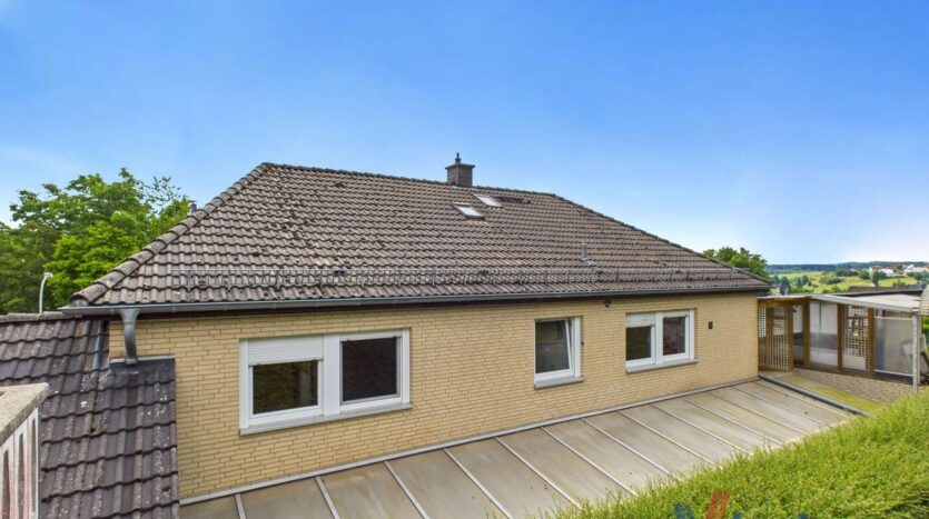 Dieses ansprechende Anwesen befindet sich in einer wunderschönen Ortsrandlage von Dahlem und bietet auf ca. 126 m² Wohnfläche im Obergeschoss und ca. 133 m² Nutzfläche im Erdgeschoss ein Zuhause mit herrlichem Ausblick und viel Potenzial. Das Haus wurde ca. 1974 erbaut. Das Erdgeschoss wurde in solider massiver Bauweise errichtet, während das Obergeschoss vom renommierten Fertighaushersteller „Streif“ aufgesetzt wurde.
