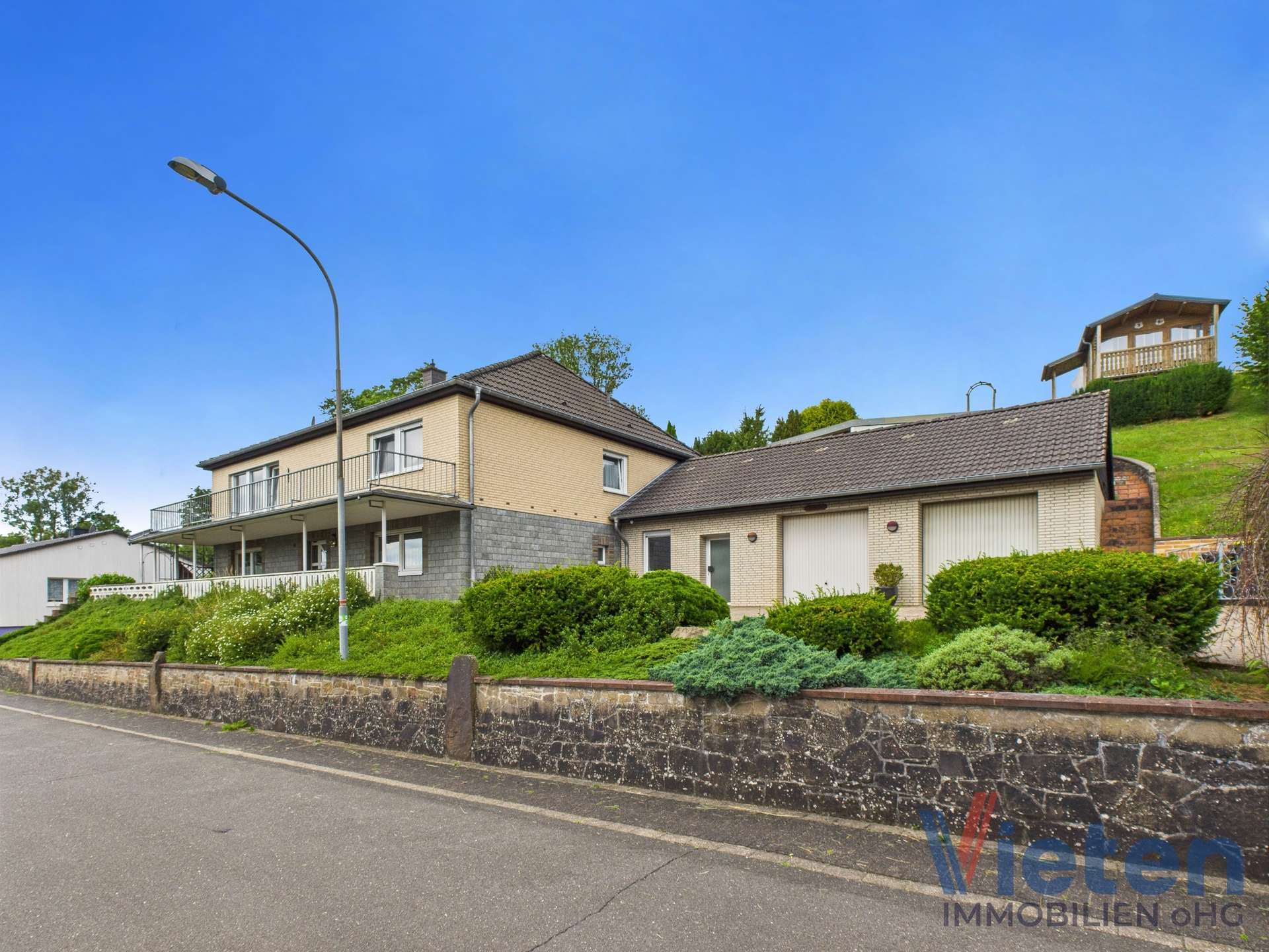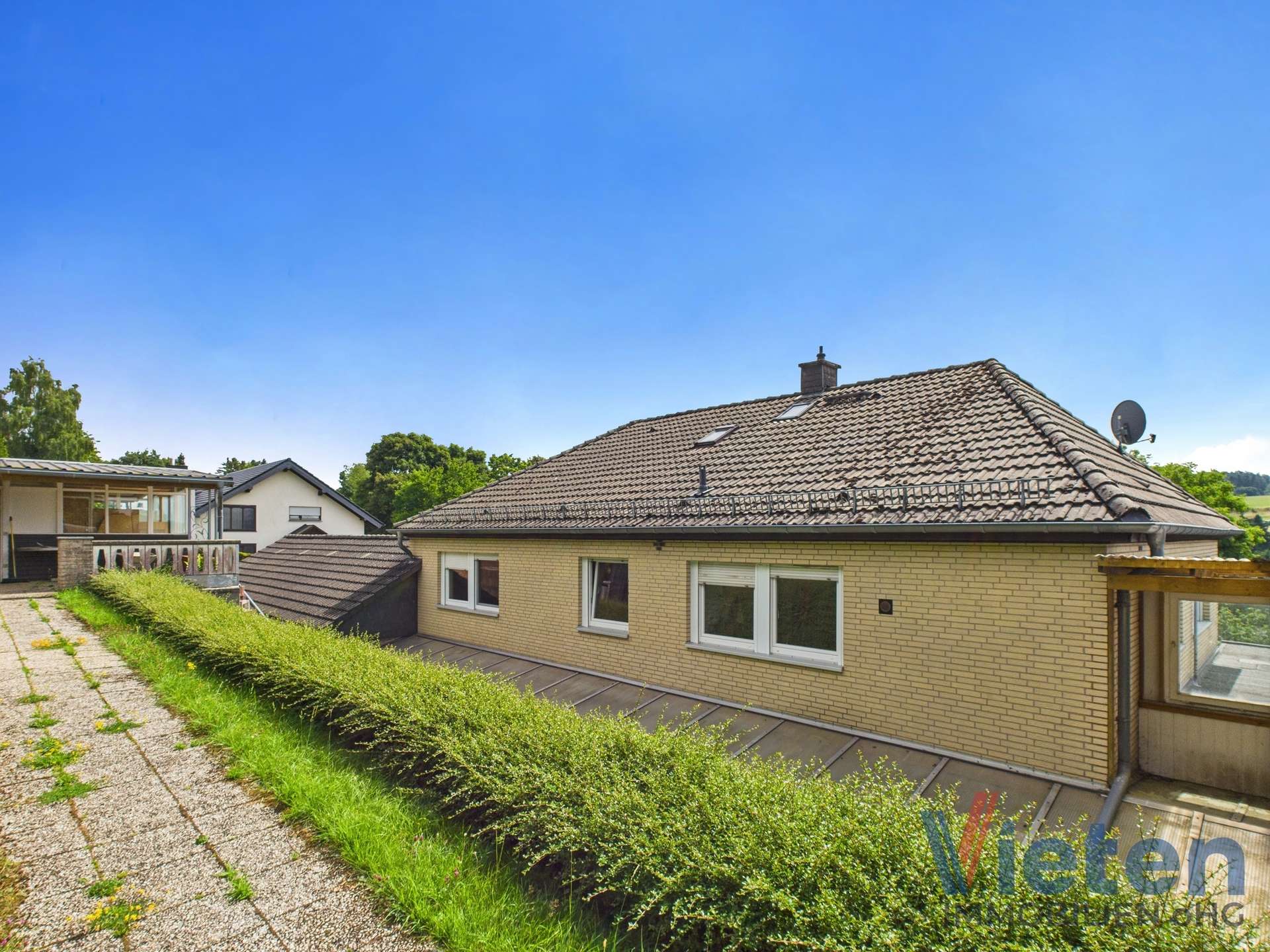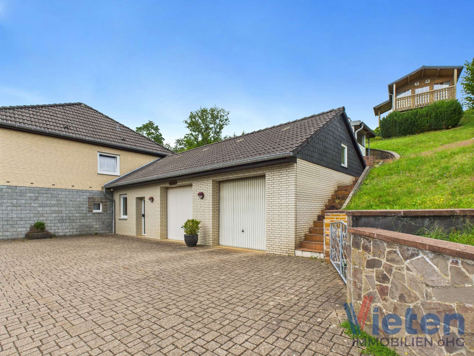 Dieses ansprechende Anwesen befindet sich in einer wunderschönen Ortsrandlage von Dahlem und bietet auf ca. 126 m² Wohnfläche im Obergeschoss und ca. 133 m² Nutzfläche im Erdgeschoss ein Zuhause mit herrlichem Ausblick und viel Potenzial. Das Haus wurde ca. 1974 erbaut. Das Erdgeschoss wurde in solider massiver Bauweise errichtet, während das Obergeschoss vom renommierten Fertighaushersteller „Streif“ aufgesetzt wurde.
