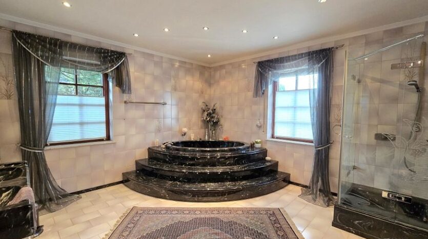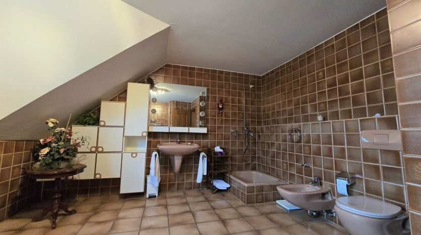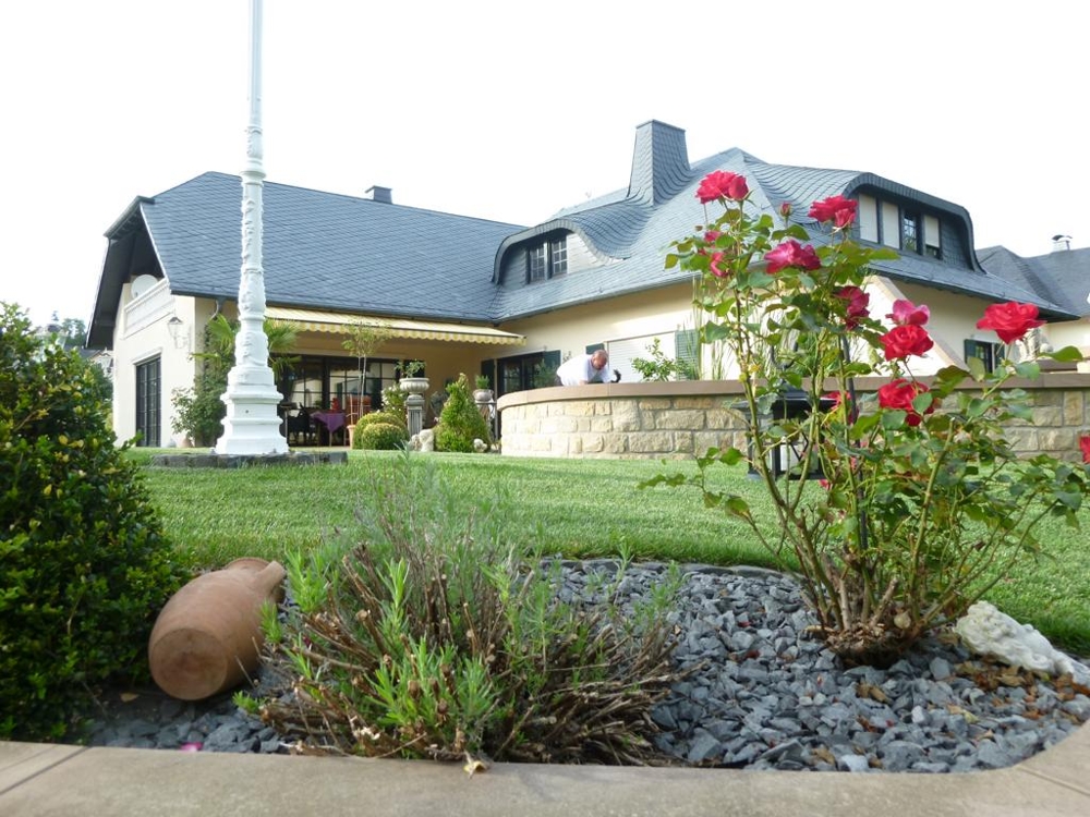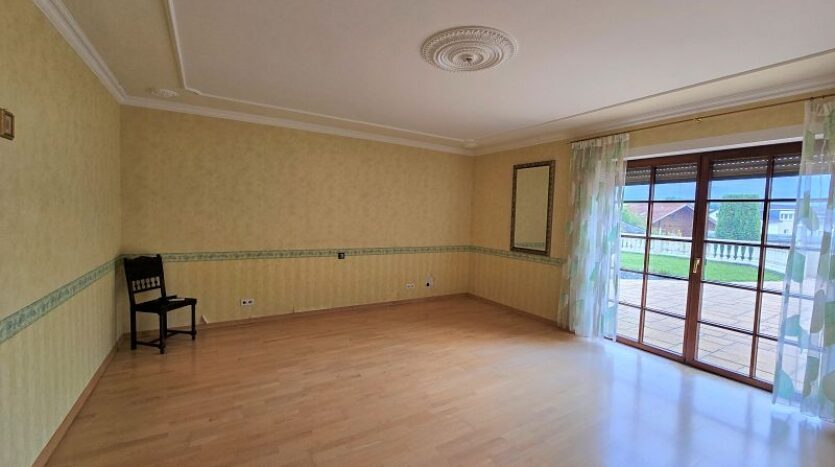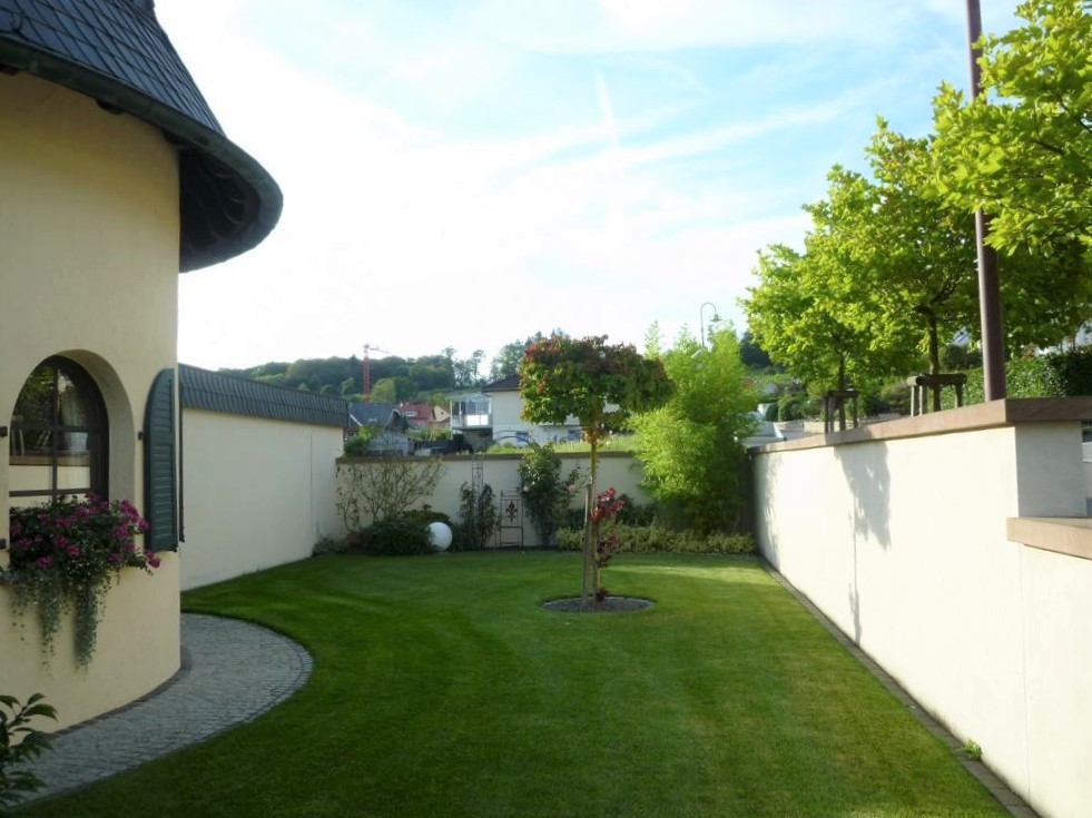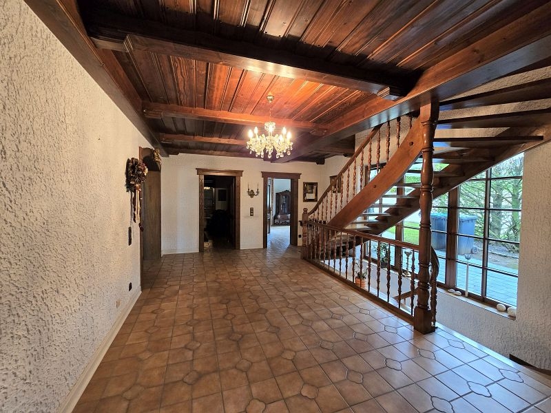 Im Erdgeschoss befinden sich der vorgesetzte Eingangsbereich mit Garderobe, ein sehr geräumiges Elternschlafzimmer, ein Elternbad mit Eckbadewanne und Dusche, eine großzügige Diele, das Turmzimmer (ca. 20 m²), die Küche mit neuwertiger Einbauküche und der ca. 68 m² große Wohn- und Essbereich mit Kamin und mit Zugang zur Außenterrasse. Ein weiterer Raum mit integrierter Küche wurde als Grill- und Outdoorküche genutzt.Villa mit Außenpool, Sauna, Wärmepumpe in hervorragender Lage Nähe Luxemburg!