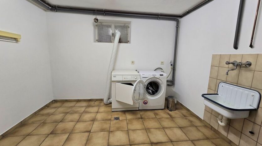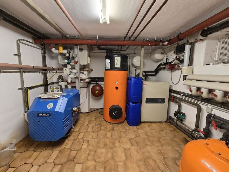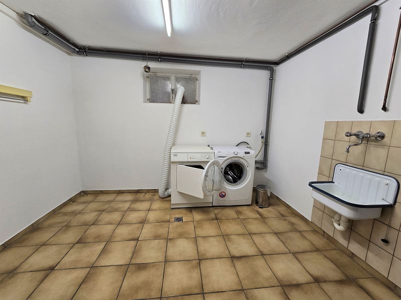 Das komplette Wohnhaus ist unterkellert. Hier befinden sich mehrere saubere Abstell- und Lagerräume, eine Toilette mit Handwaschbecken, der Heizungs- und Technikraum und die große Doppelgarage.