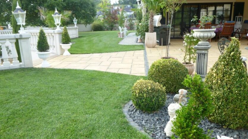 Alle Gehwege sind befestigt und größtenteils mit Granitsteinen gepflastert.