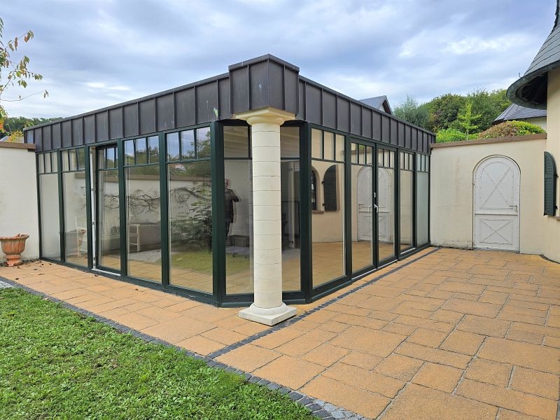 Neben dem Wohnhaus wurde ein sehr hochwertiger und schöner Wintergarten (ca. 7,30 x 6,80 Meter) errichtet. Dieser lichtdurchflutete Raum vermittelt zu jeder Jahreszeit das passende Wohlfühlklima.