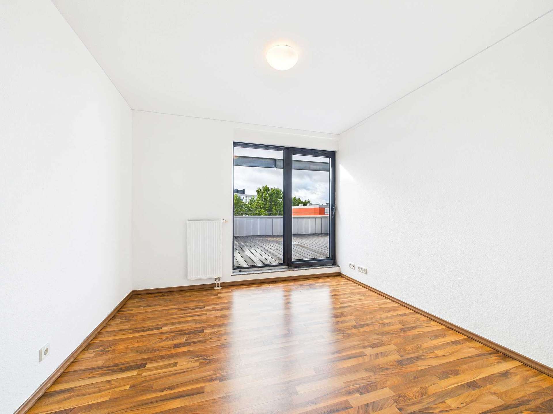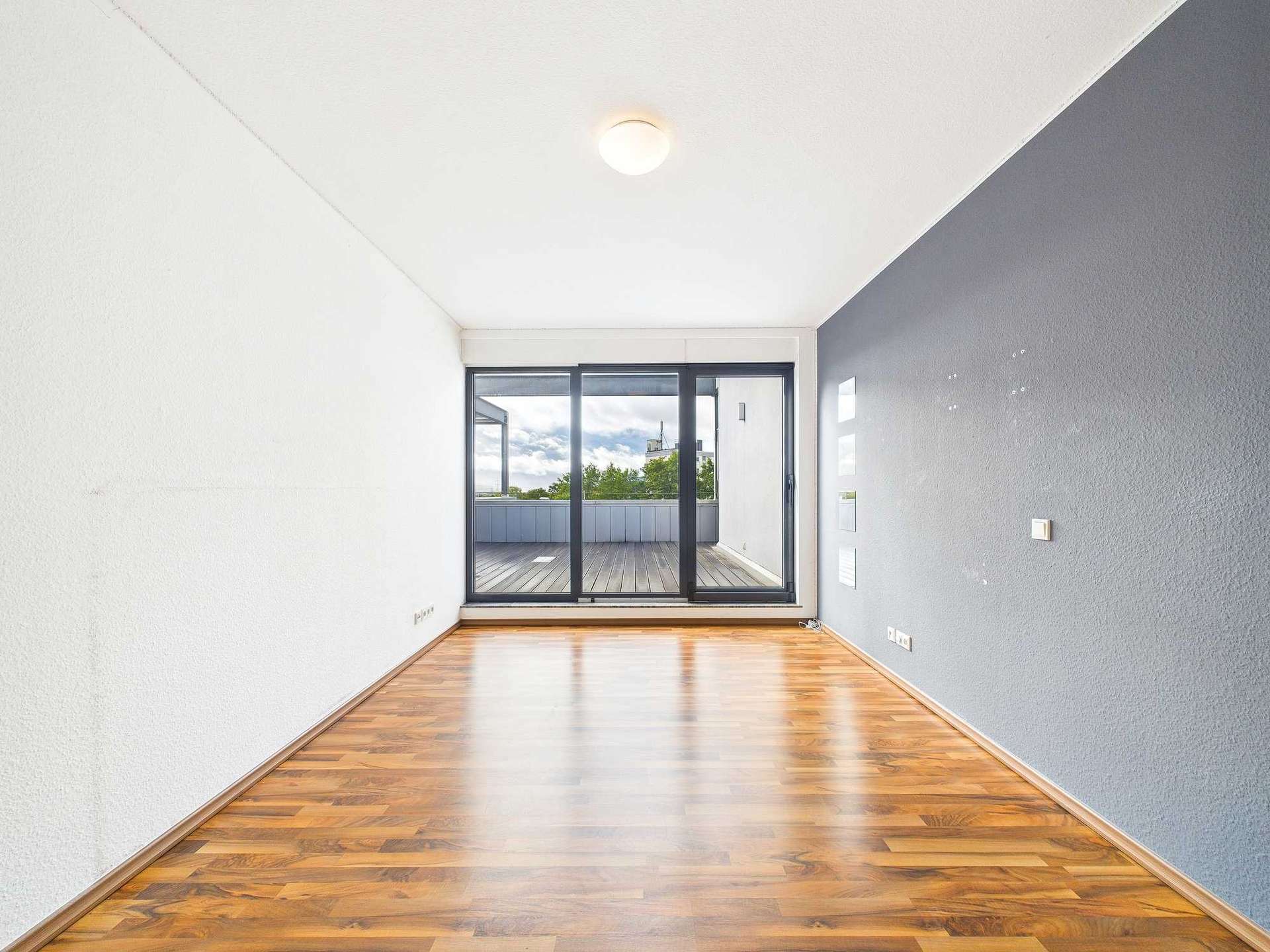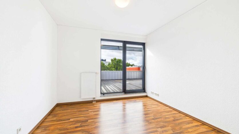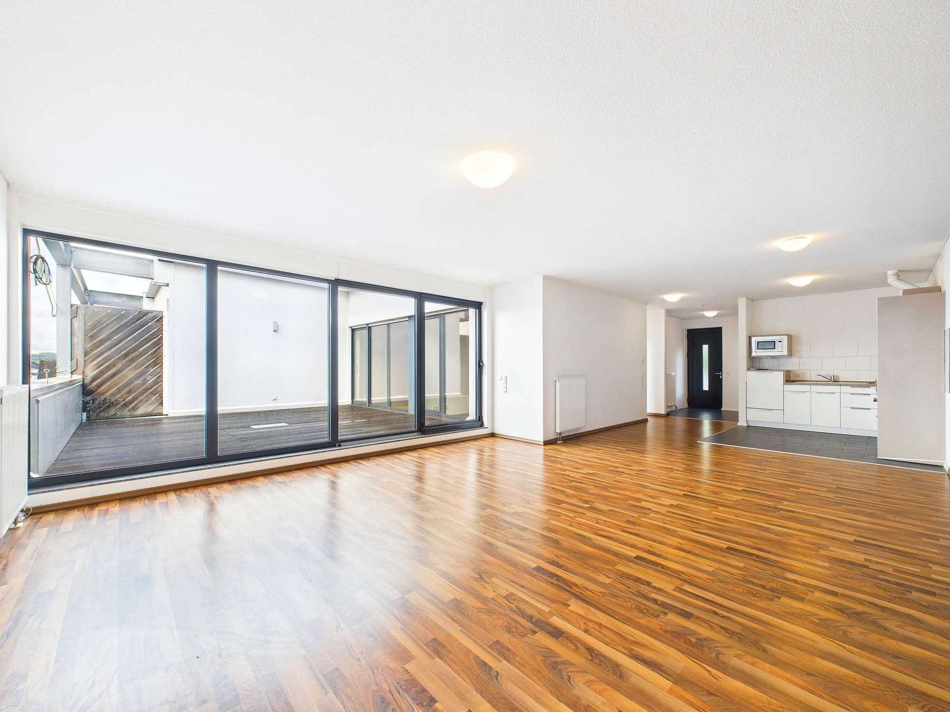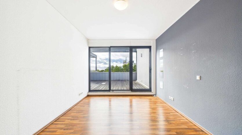 Herzstück der Wohnung ist der großzügig geschnittene Wohn- und Essbereich mit direktem Zugang zur weitläufigen Dachterrasse. Diese bietet einen idealen Rückzugsort für sonnige Stunden, entspannte Abende oder geselliges Beisammensein im Freien. Große Fensterflächen sorgen im Innenbereich für ein angenehmes, lichtdurchflutetes Wohnambiente.