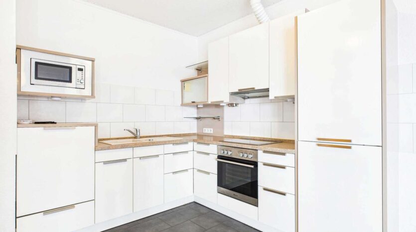 Die offene Küche ist nicht nur funktional gestaltet, sondern auch mit einer hochwertigen Einbauküche ausgestattet – ideal für alle, die gerne kochen und den Essbereich als zentralen Ort des Zusammenkommens schätzen.