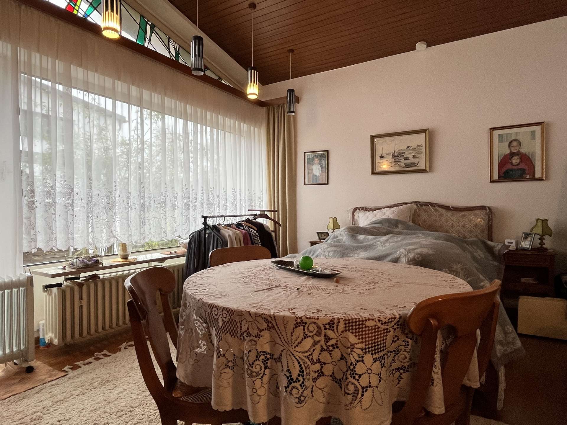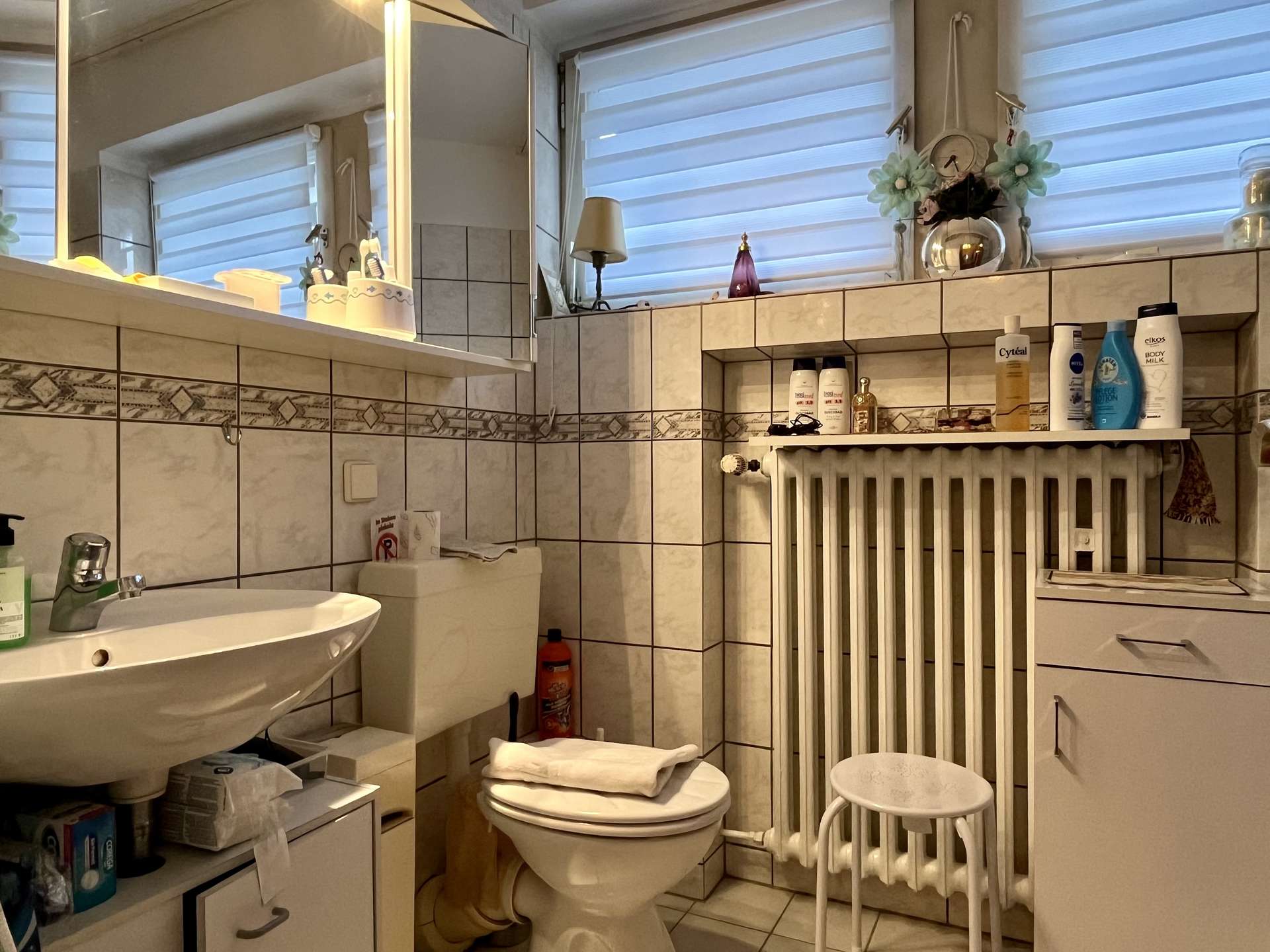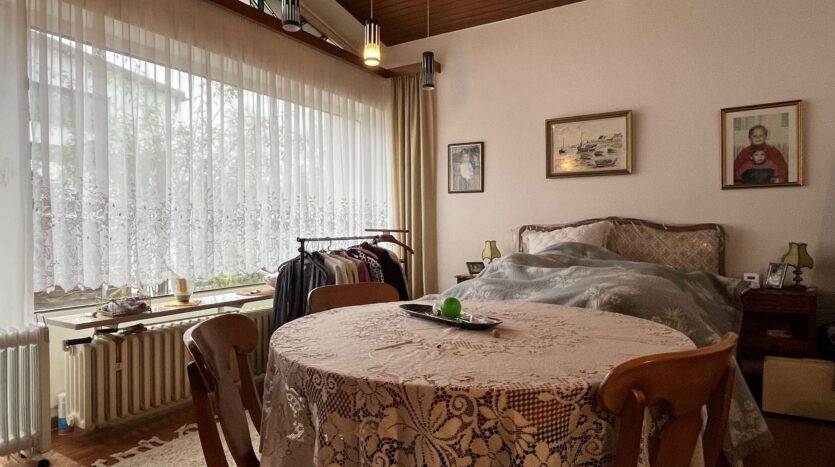 Das Haus verfügt über insgesamt vier Zimmer, drei Schlafzimmer und drei Bäder. Zwei Bäder mit Tageslicht und ein Gäste-WC befinden sich auf der Wohnetage. Ein renoviertes Bad mit Tageslicht befindet sich im Keller. Der großzügige Wohn- und Essbereich ist ein echtes Highlight des Hauses. Hier können Sie gemütliche Abende mit Freunden und der Familie verbringen.