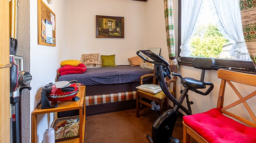 Veranda vor dem Hauseingang, Wohnzimmer, ein kleineres und ein größeres Schlafzimmer, Küche, neues Badezimmer mit Dusche/WC/Fenster, kleiner Abstellspind im Badezimmer