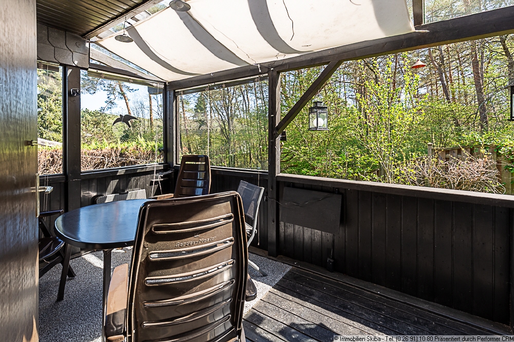 – Die Sonnenveranda mit Glasüberdachung vor dem Hauseingang lädt zum Entspannen ein.