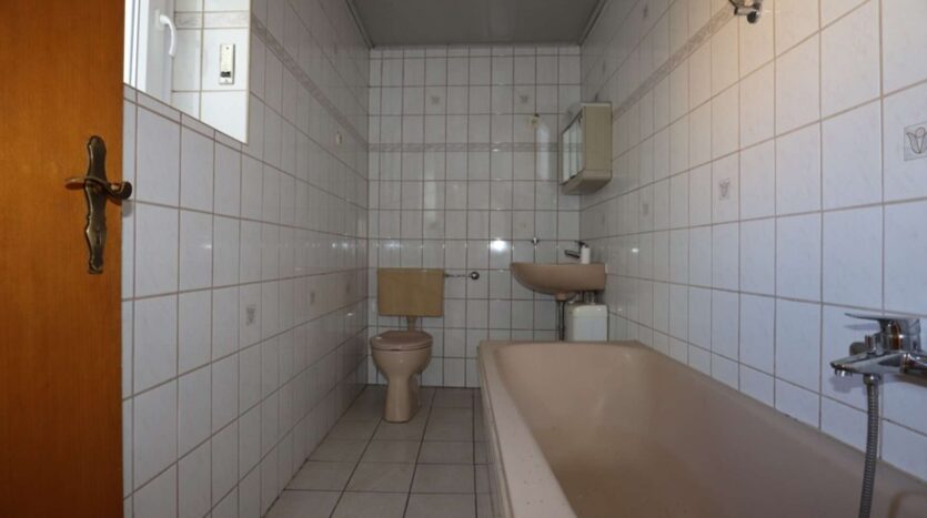 Dieses einseitig angebaute Wohn- und Geschäftshaus wurde 1970 in Massivbauweise gebaut. Im Erdgeschoss befindet sich eine kleine Gewerbeeinheit mit Nebenraum und kleinem Bad, im Obergeschoss eine geräumige und gut geschnittene Wohnung mit 2-3 Schlafzimmern.